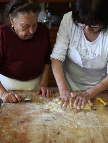 Everywhere you look, similar rituals unfold. Tomatoes drying outdoors. Fava beans being hulled by nonnas seated on chairs in front of their homes, often with a neighbor nearby doing the same. Food preparation becomes something both practical and quietly social, repeated across households at the same time.