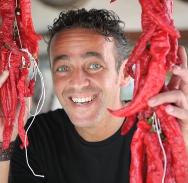 Summer is the most demanding period. Gardens require daily attention, and harvests begin to arrive in volume. Tomatoes are cooked down into passata and bottled for use throughout the year. Peppers are dried or preserved in oil, often strung and hung outside homes. These tasks are repetitive and time-consuming, frequently done in groups, with knowledge passed through observation rather than instruction.