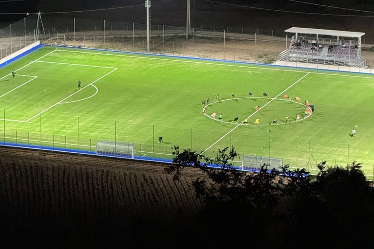 Alongside these long-established routines, Grottole also supports more organized forms of movement that are deeply rooted in community life. In 2025, the village completed a new regulation-size football field, equipped with lights and bleachers. When the local team plays — and especially when they win — the cheering can be heard throughout town, carrying well beyond the field itself. Football here is not just a sport, but a shared point of pride and collective energy.