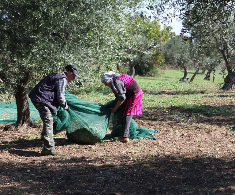 Agricultural cycles continue to structure the year. Late summer and early autumn bring grape harvests and winemaking, followed by the olive harvest and oil pressing in November. These periods involve long days outdoors, shared labor among family members, and repetitive physical work that has changed little over generations. The movement involved isn’t optimized or efficient, but purposeful and well understood.