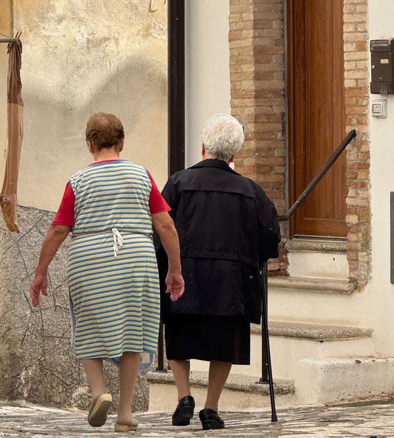 In Grottole, physical movement isn’t planned or set apart from daily life. It happens because the village itself requires it. Built on a hilltop, with narrow stone streets, stairways, and steep inclines, simply moving through the day involves walking. Going to the bar, visiting a neighbor, carrying groceries, or heading to a cantina or garden all mean navigating a layout shaped long before cars or convenience.